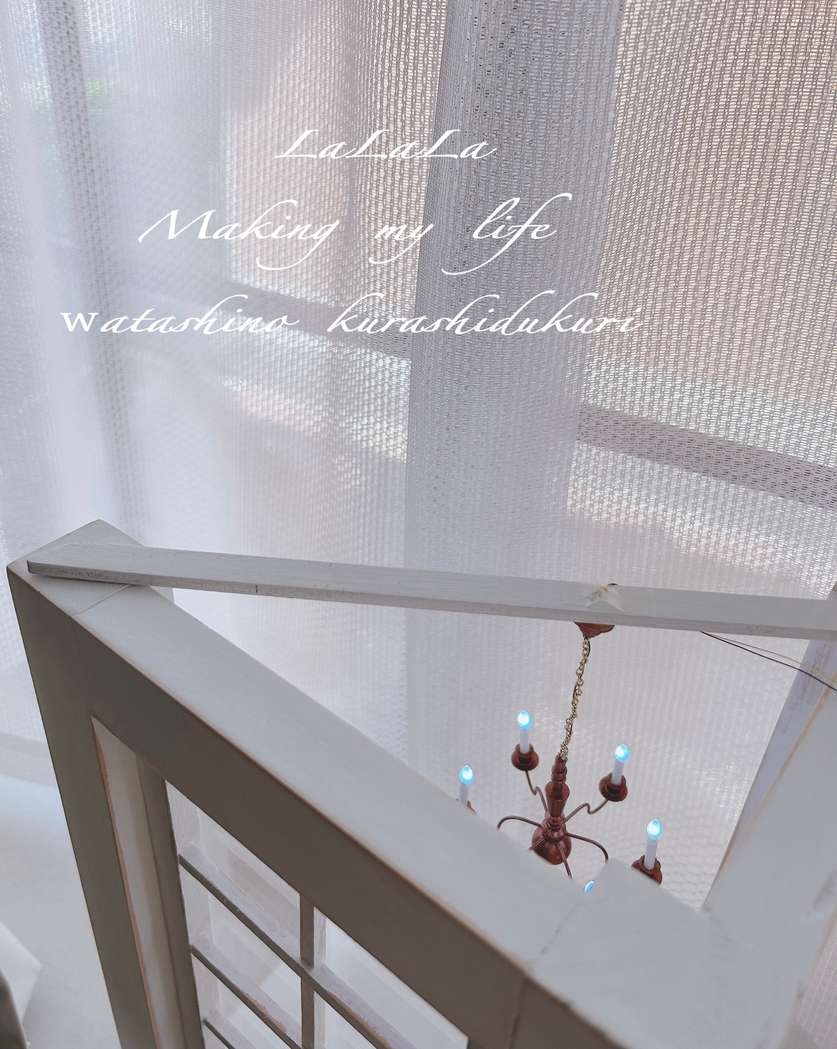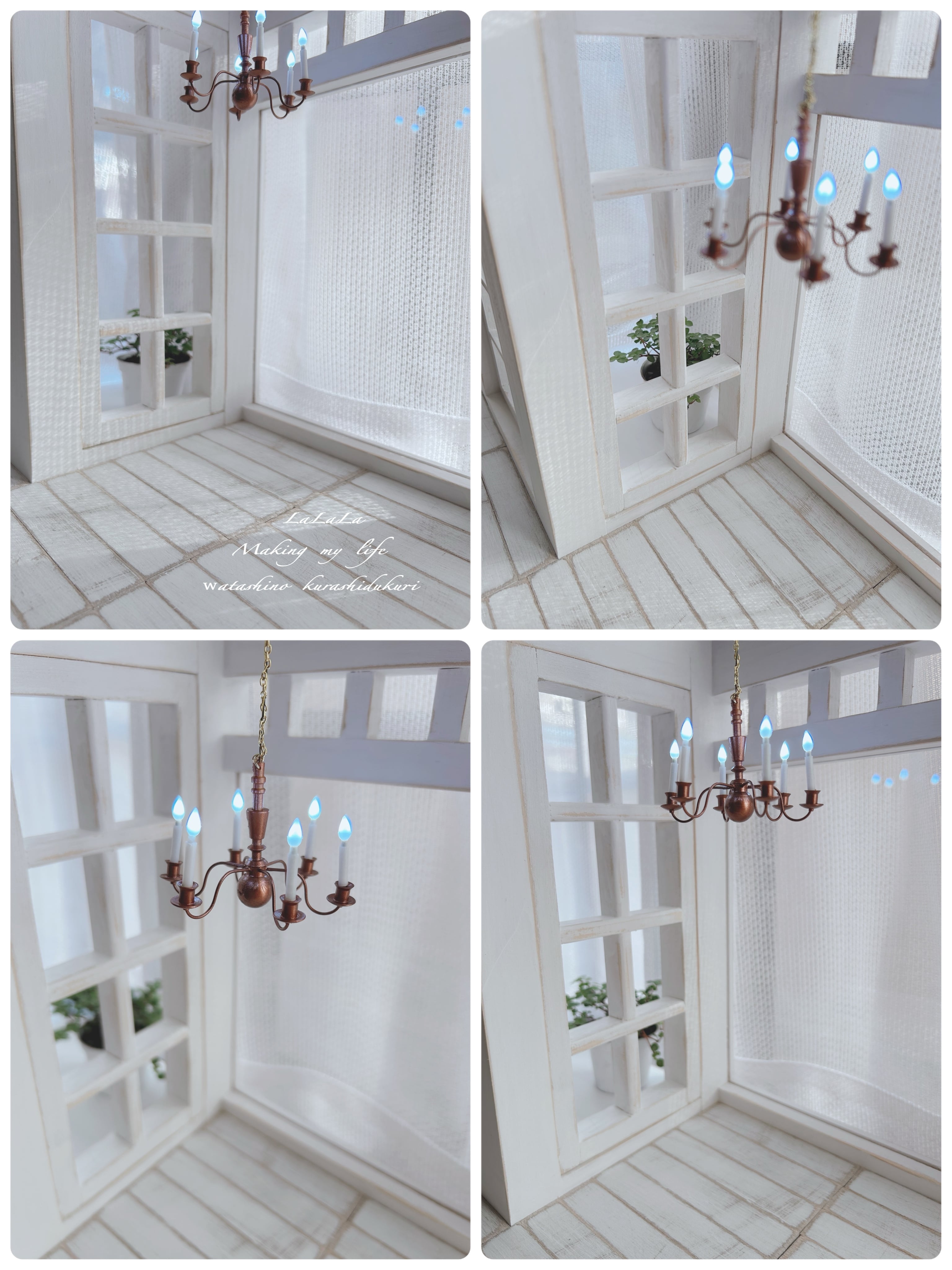 シャンデリアは、平材に両面テープで貼っています!