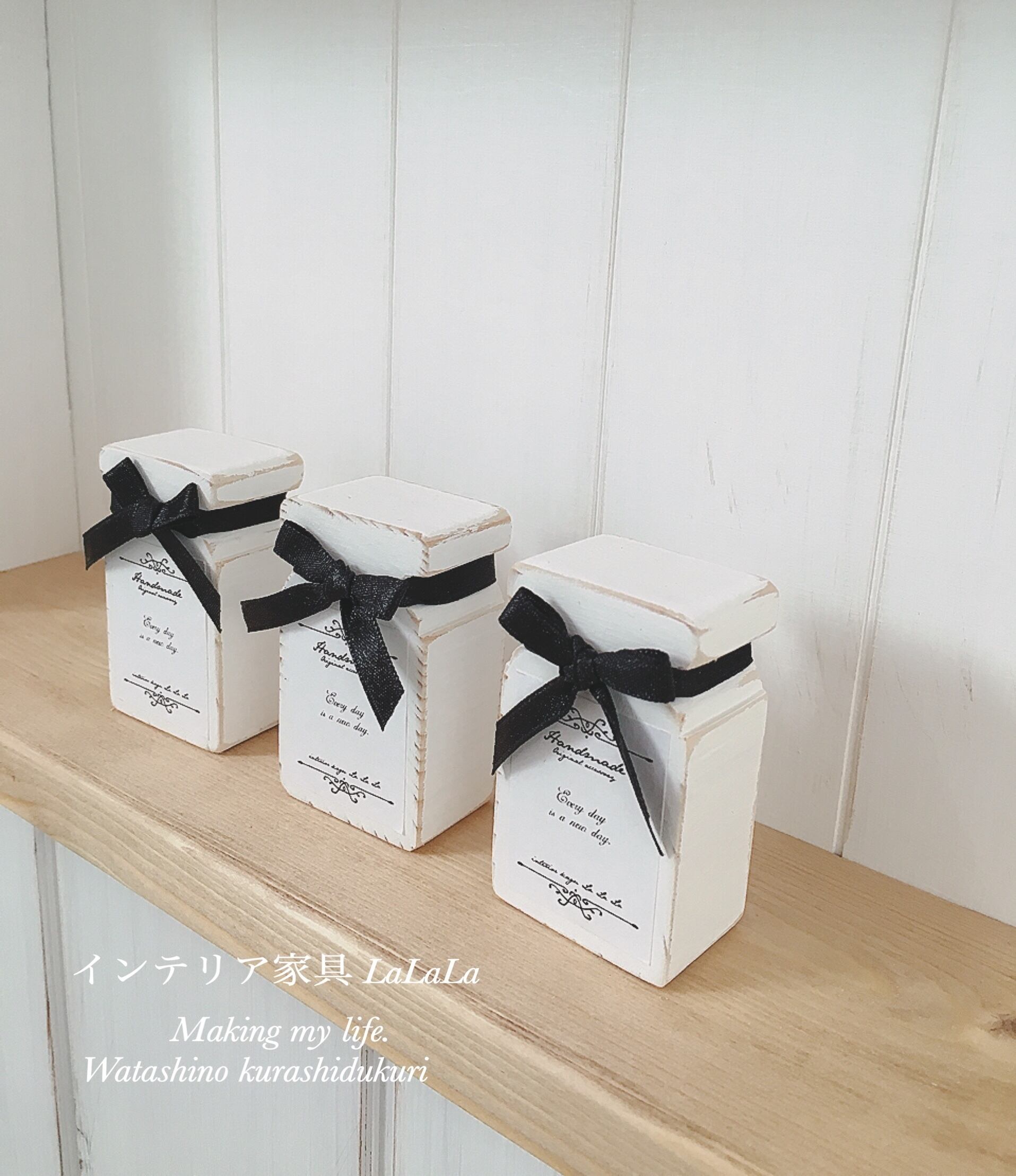 黒いリボンで結んで、大人シックなボトルになりました♡